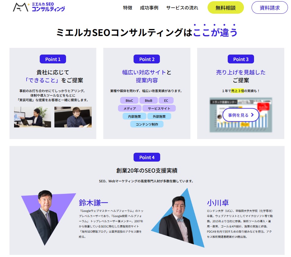 そのため、SEOを成功させるために大切なことを理解し共にサイトを育てていくことでSEOを成功へ導きます。