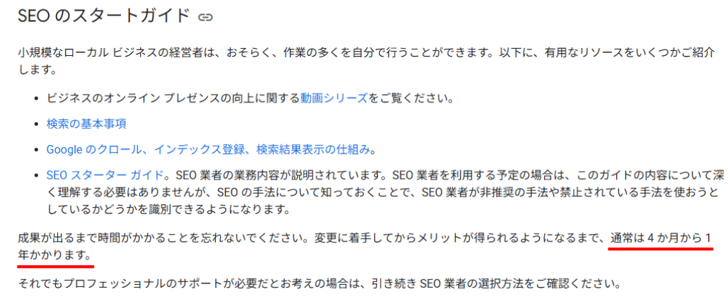 • SEOの効果が出るまでには4カ月~1年ほどかかるとされている