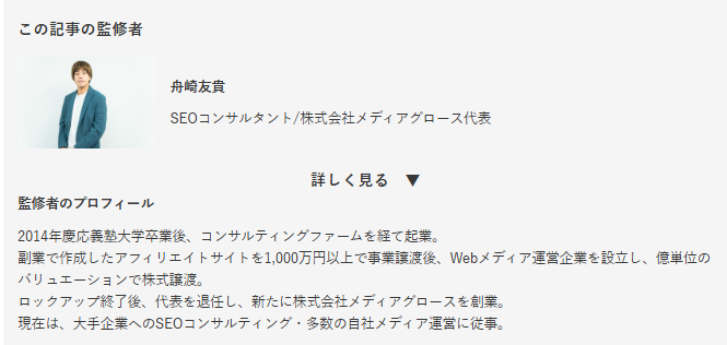 YMYLに該当するコンテンツでは、信頼できる情報を提供することがより重要になるため、ファクトチェックや「誰が書いた記事か」を明記することも重要です。