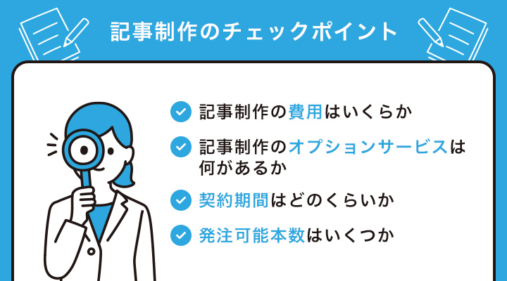 特に、費用、契約期間、SEO対応領域、記事制作の有無など、依頼する際に気になる点をリストにまとめているので、ぜひ参考いただければと思います。
