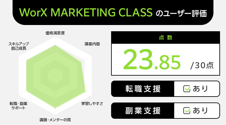 転職活動のみのサポートなため、副業やフリーランスを目的としてWebマーケティングを学習したい人にはミスマッチの可能性があります。